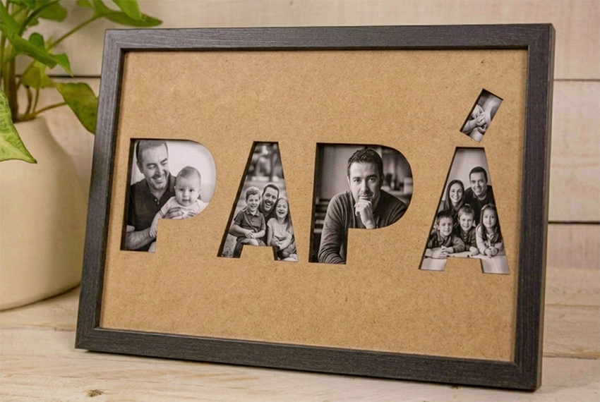 El nombre del protagonista aparece troquelado con precisión láser, acompañado de espacio para colocar fotografías y una frase personalizable al gusto del cliente, convirtiendo cada pieza en un recuerdo exclusivo.