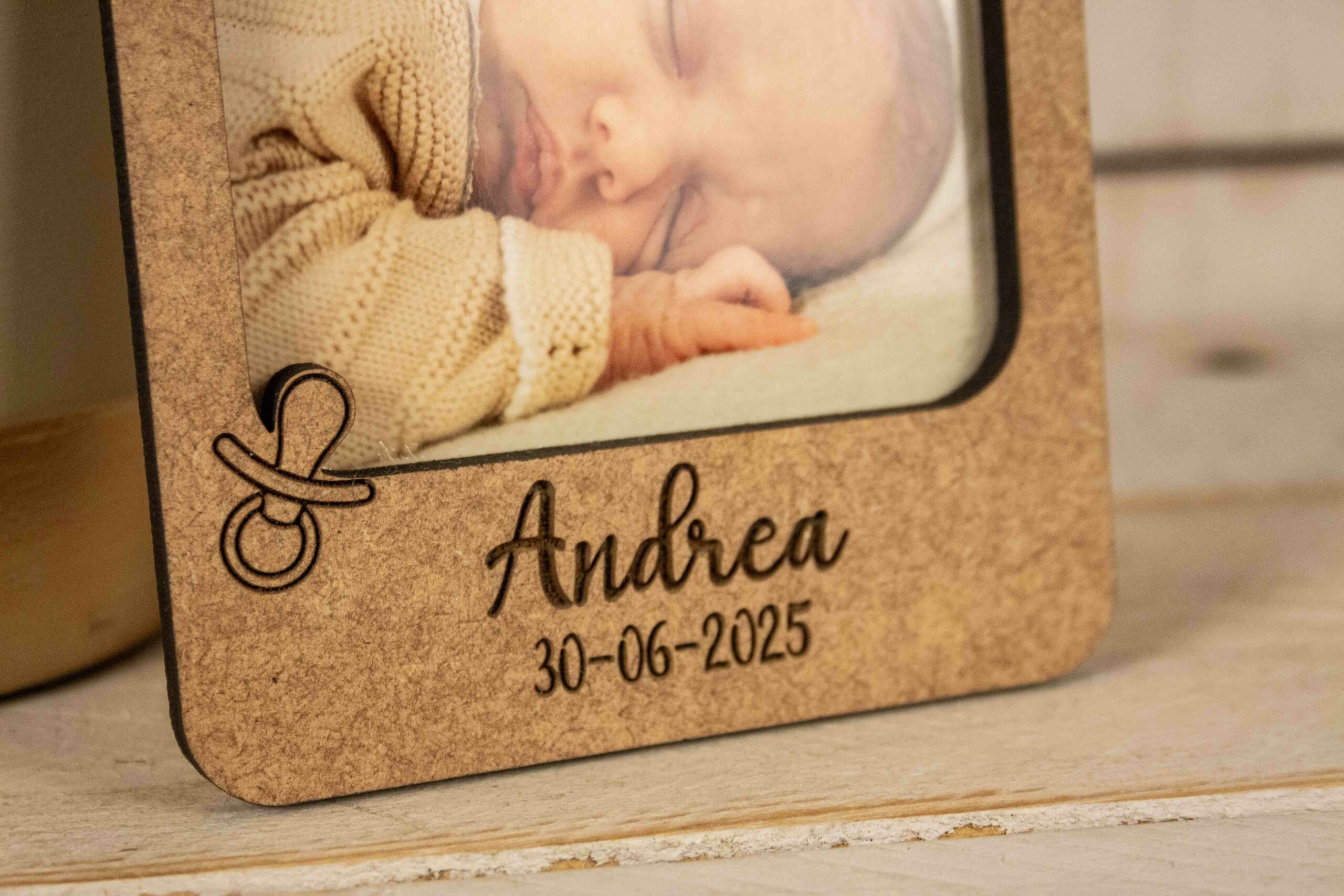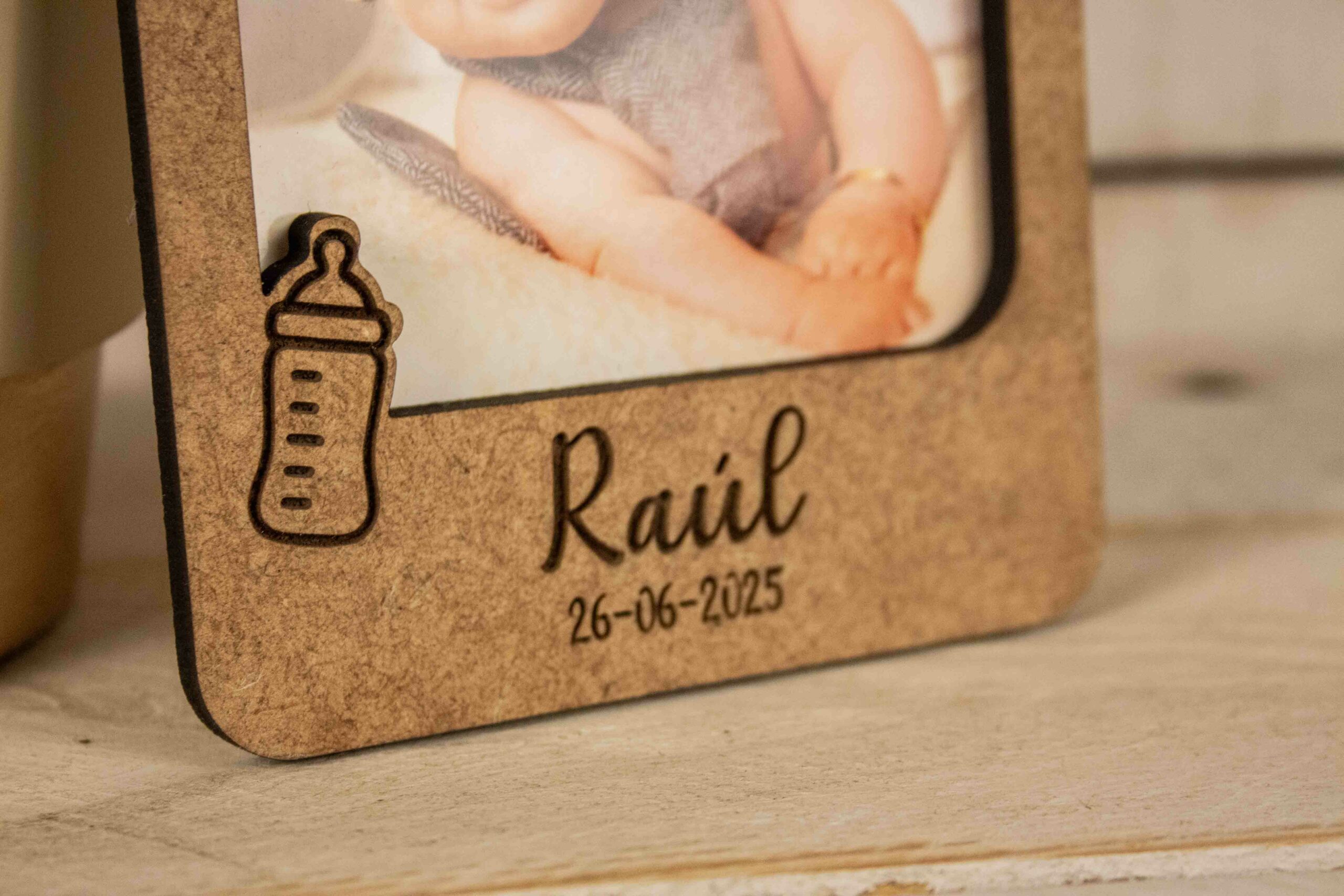 Marco de madera personalizado con foto y nombre del bebé y con imán