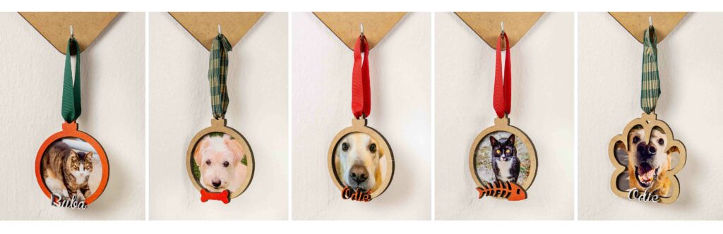 - Bolas personalizadas – 7,50 € : cualquier bola personalizada con el nombre, ya sea redonda, huella, cabeza de gato o en cabeza de reno.