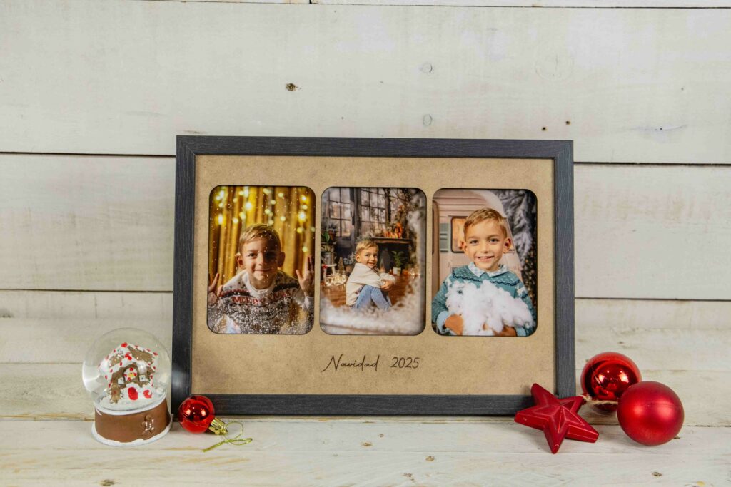 Guarda la magia de la Navidad en un recuerdo que durará para siempre con este cuadro de navidad de 3 fotos. Ideal para mostrar las imágenes más especiales de tu sesión infantil de Navidad en estudio o las fotos que tú elijas. Cada imagen captura la ilusión, ternura y alegría que hacen de estas fiestas un momento inolvidable. ✨