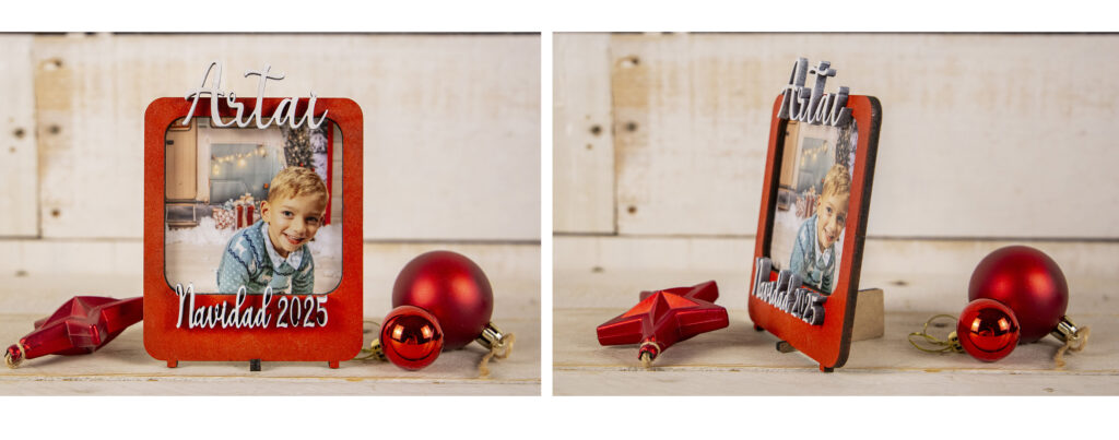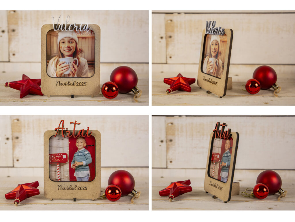 Realizado con madera DM, cortado y grabado con láser, este marco combina el encanto artesanal con detalles festivos únicos.